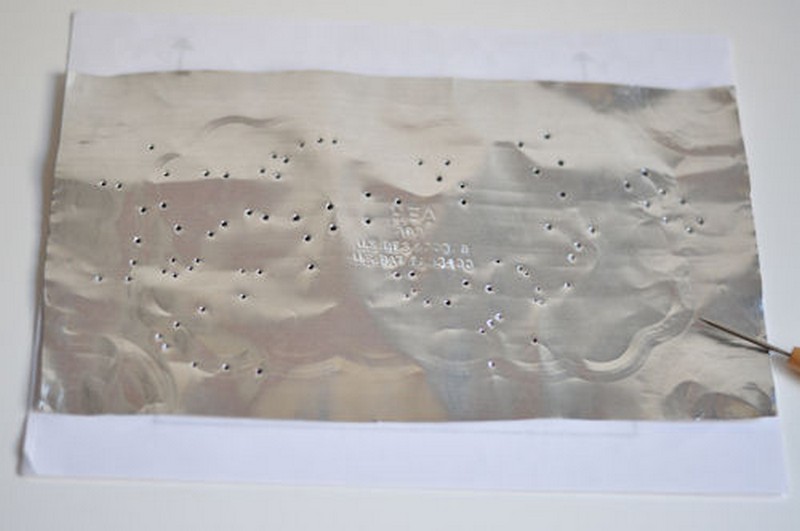 Step 1. Cut a long rectangle from the foil pan, which would fit into your jar. It should be wide enough to reach the cover of the jar, and long enough to fit around inside. Flatten it down with a spoon.