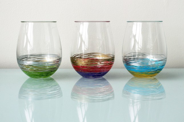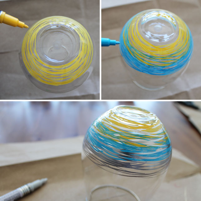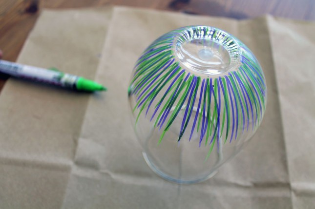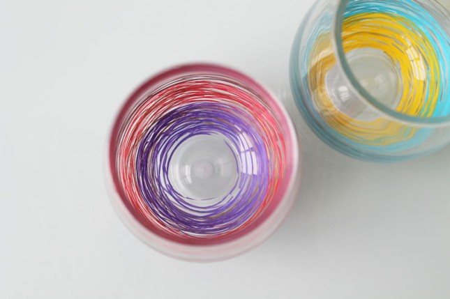 For the striped ones, start by striping around the glass from the base with your first color. Then the second color. And the third. Done!