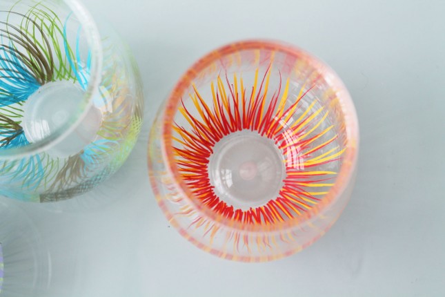Last we have the firework starburst style glass. For this you just start at the bottom and draw lines up about a third of the way to the top of the glass. Add another color and you’re done.