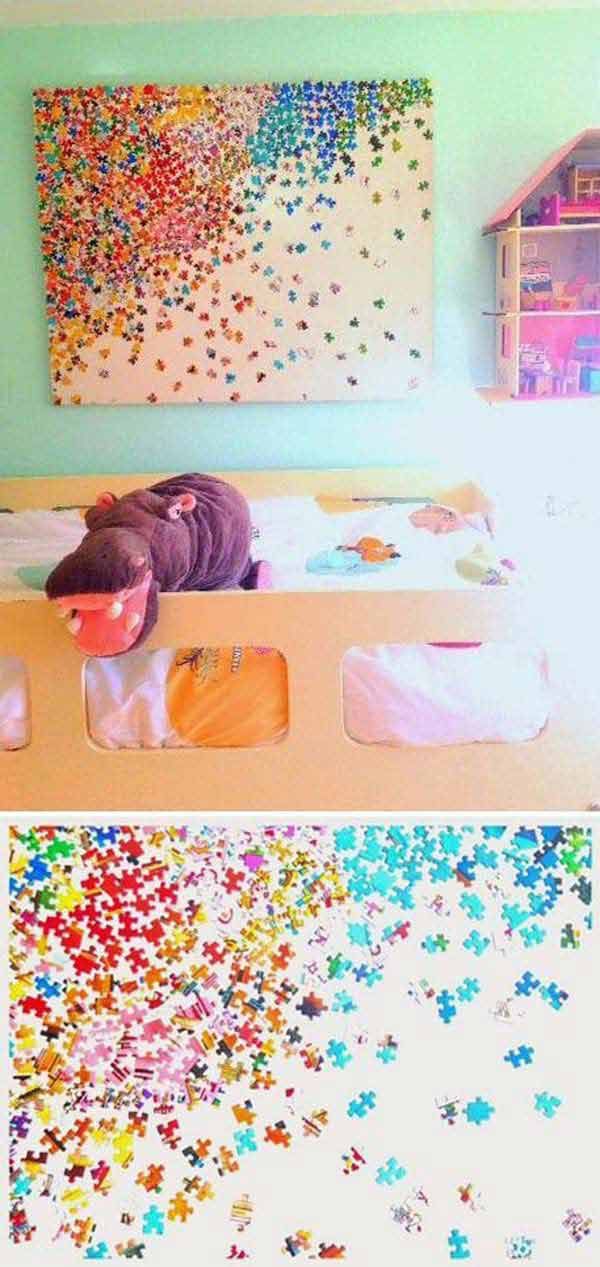 If you love wall canvas, then you should do something with your left jigsaw puzzle pieces. Make it colorful and vivid. Here is an example on how it will look.